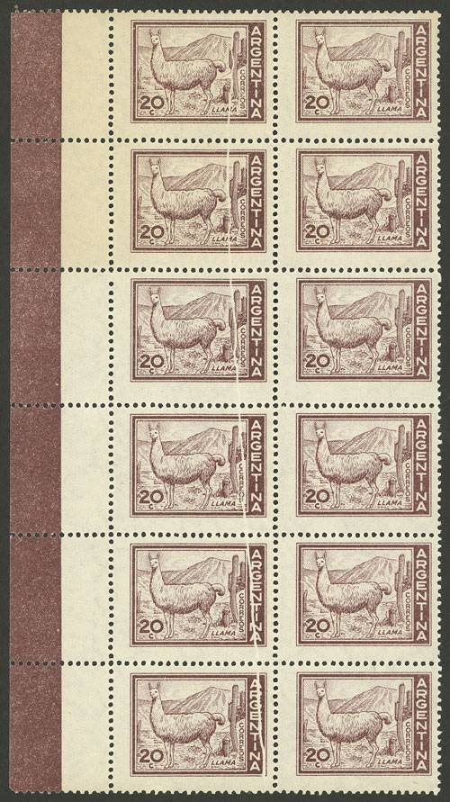 block of 12 with sheet margin, VARIETY: Paper fold along the left stamps (Image)