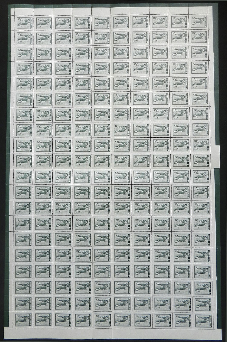 cmpl. sheet of 200 stamps, very fresh gum, with a few separated perforations because it was folded for a long time, perfect to look for minor varieties in different positions