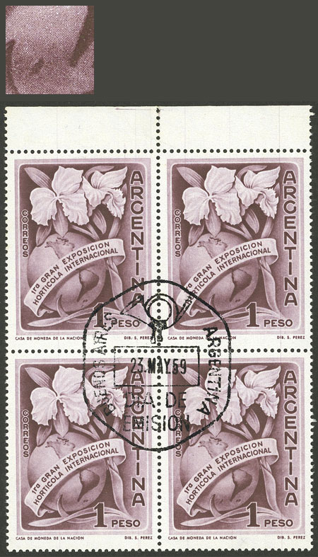marginal block of 4 with first day pmk, one with VARIETY: Island west of Chile (Image)