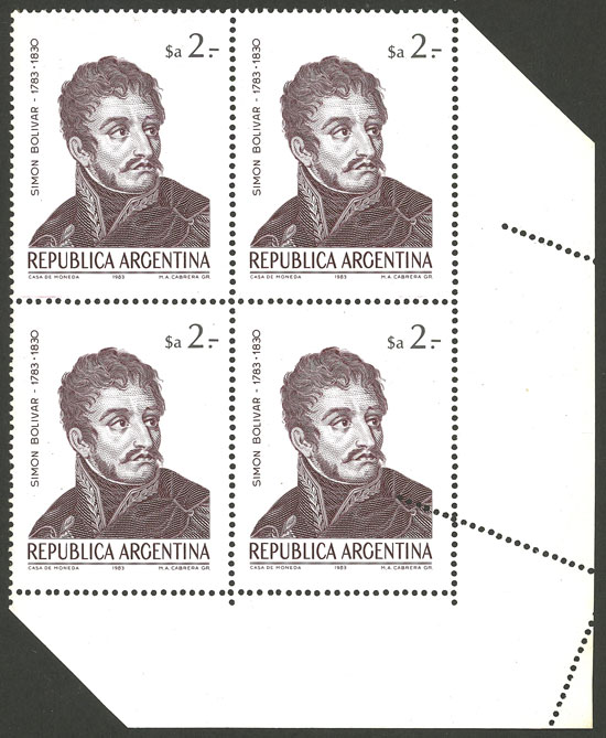 corner block of 4 with attractive and uncommon perforation variety! (Image)