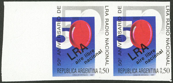 GJ.2375P, imperforate pair with sheet margin, VARIETY: shifted colors, rare and of excellent quality! (Image)
