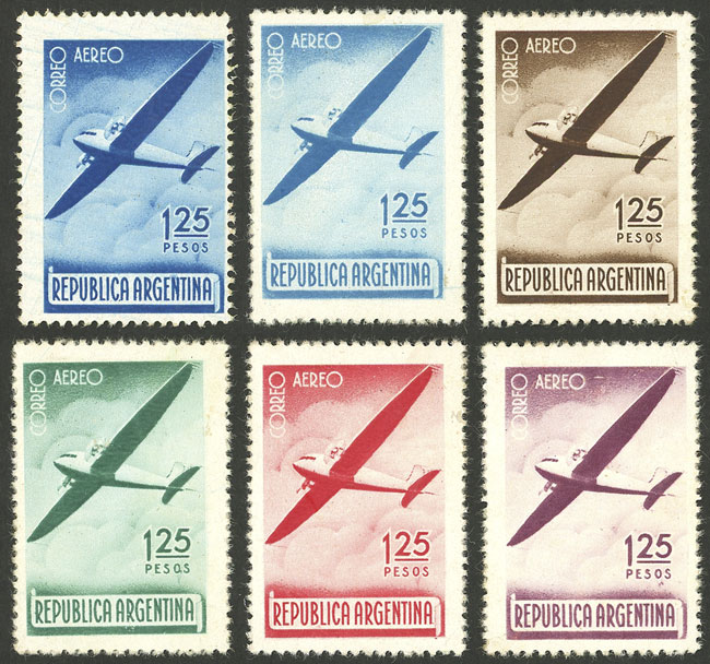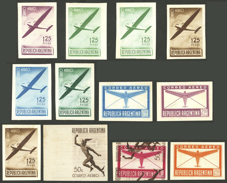 6 PROOFS on thick paper of glazed front, perforated, all in different colors (Image)