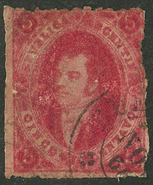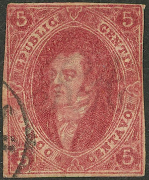 5c. 7th printing, used in Rosario, thin on back, very good front, good opportunity (Image)