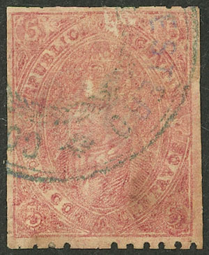 5c. 5th printing, with biconcave ellipse cancel of Rosario in green-blue (Image)