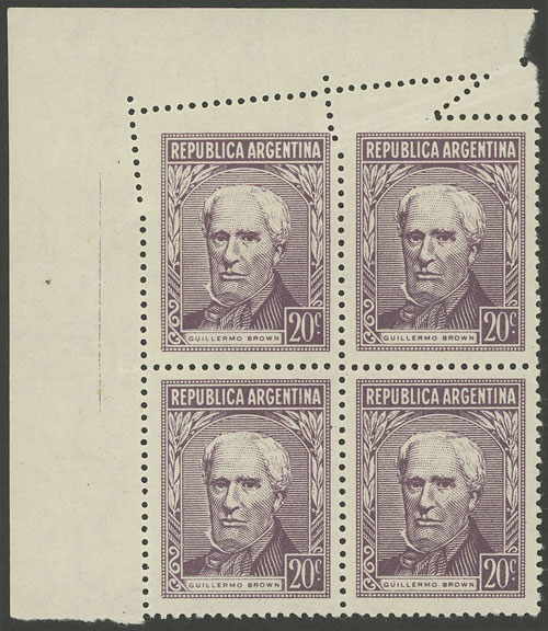 1942 Estrada, corner block of 4 IMPERFORATE on the left border, excellent quality, rare! (Image)