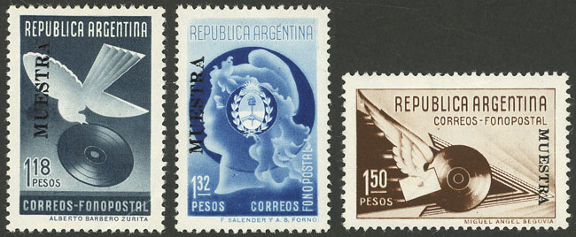 GJ.836/38, 1939 Fonopost, the set of 3 values with MUESTRA overprint, VF and very rare! (Image)