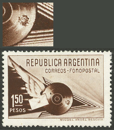 1939 1.50P. Fonopost with BROKEN RECORD variety (pos.68), VF quality! (Image)