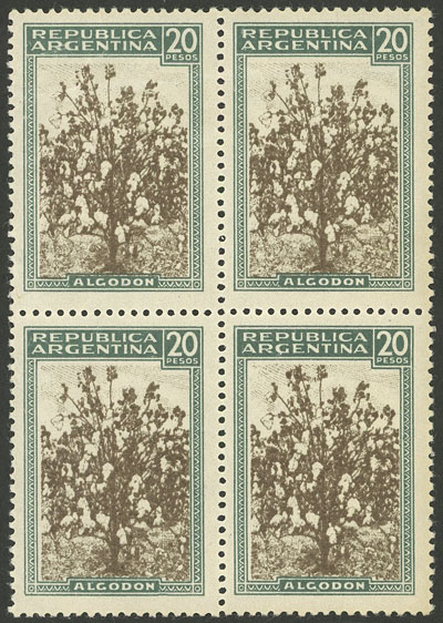 20P. Cotton, block of 4 printed on thick glazed paper without watermark apparently of Canadian origin (Pettigiani 816-S´, catalog value US$50 each stamp), MNH (+30%), excellent quality, rare! (Image)