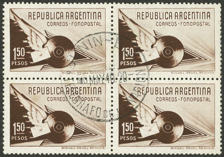 1939 1.50P. Fonopost, block of 4 used in Junin on 9/MAY/1940, excellent quality, rare! (Image)