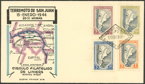 GJ.912/915, 1944 San Juan earthquake victims, FDC cover of very fine quality! (Image)