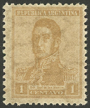 1c. San Martín, horiz honeycomb wmk, perf 13¼x12½, VF (Image)