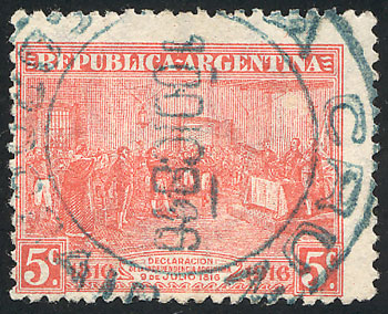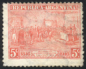 5c. Centenary of Independence, horiz honeycomb wmk, re-gummed, rare, low start! (Image)