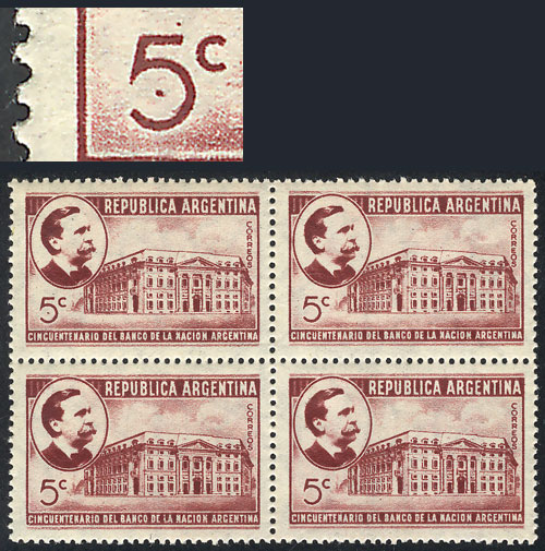 5c. Banco de la Nación Argentina, with variety: Spot inside the "5", VF quality (Image)
