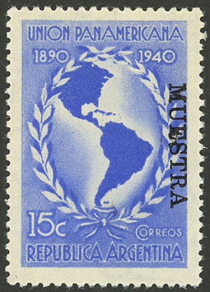 15c. Pan-American Union 50 years, with "MUESTRA" ovpt., VF (Image)