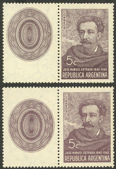 GJ.856CZ, 5c. Estrada, 2 examples with lef label: One with centered medalion, the other one with medalion with upward shift, VF (Image)