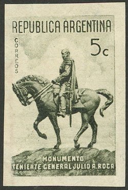 5c. Monument to Roca, proof in gray-olive green, on special paper for specimens, VF (Image)