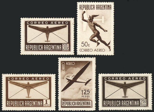 airmail, PERFORATED proofs in chestnut color of all the values of the set, VF quality (Image)