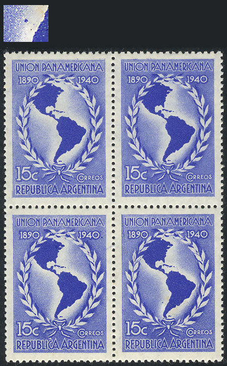 block of 4, one with VARIETY: Color spot inside the "5", VF (Image)