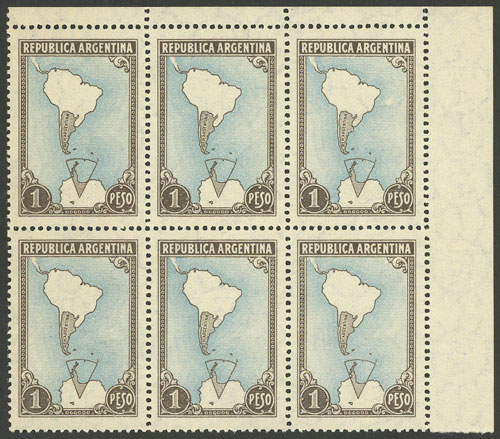corner block of 6 with some minor varieties, MNH, VF (Image)