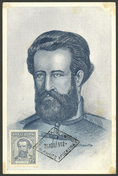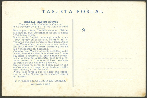 GJ.872, 15c. Martín Güemes, on first day card (Image)