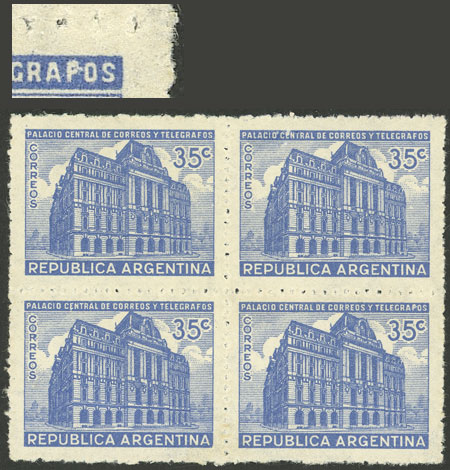 35c. Central Post Office, block of 4, one with "TELEGRAPOS" variety, VF (Image)