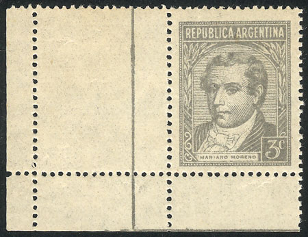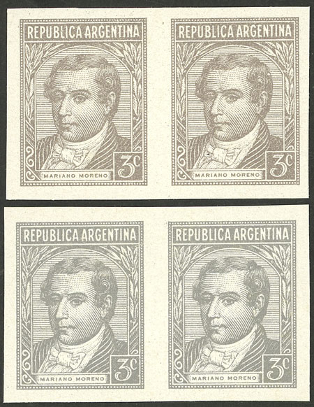 3c. Moreno, proofs in gray and light dun, on glazed paper, in pairs, VF quality (Image)