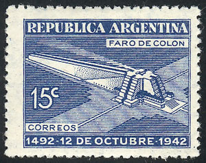 15c. Discovery of America 450 years, round sun wmk, VF quality (Image)