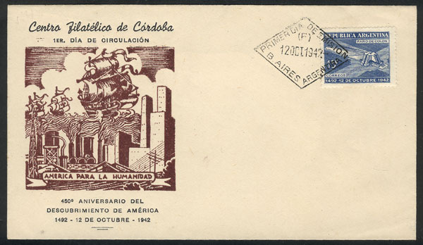 an envelope of the Philatelic Center of Córdoba, with first day postmark of Buenos Aires, VF (Image)