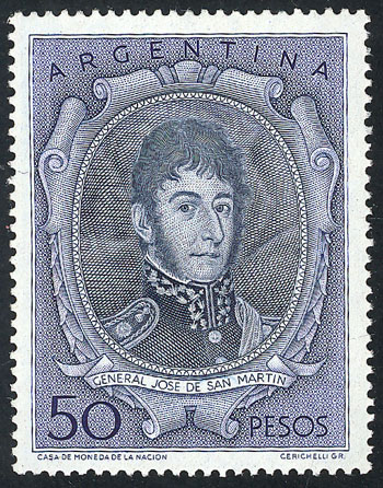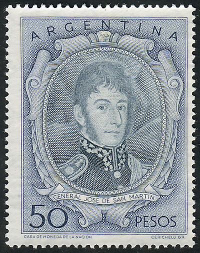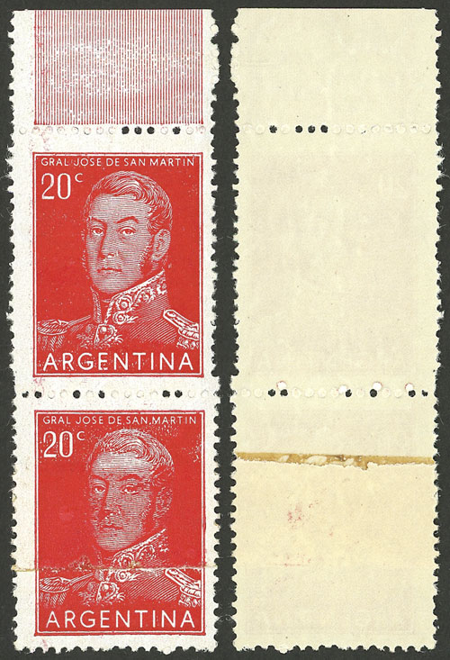 GJ.1057BSG, 1954/7 50P. San Martín PRINTED ON GUM var., excellent quality! (Image)