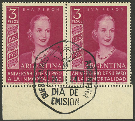 3P. Eva Perón, pair with first day postmark, VF (Image)