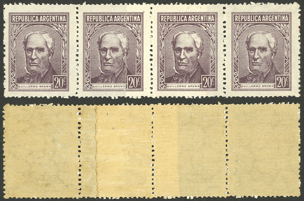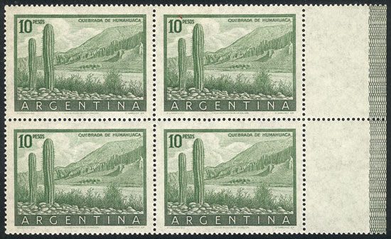 marginal block of 4 on national unsurfaced paper, VF quality (Image)
