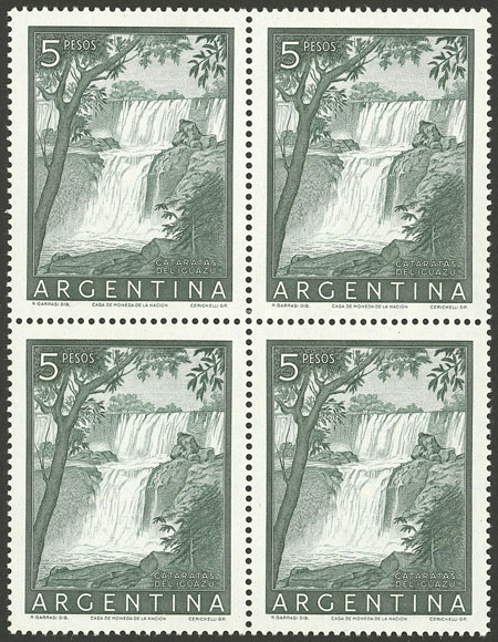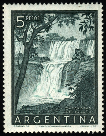 $5 Iguazú falls, chalky paper, perf 13½. (Image)