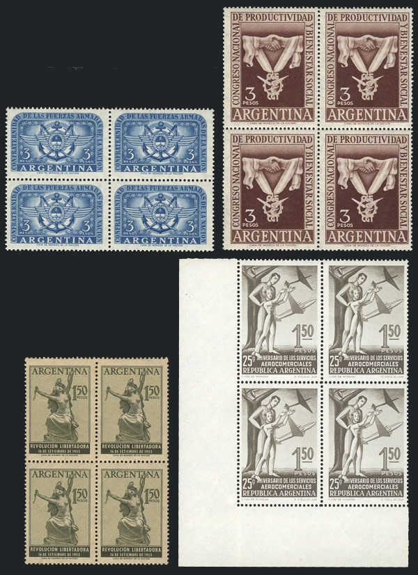 GJ.1058/61, 1955 complete yearset of commemorative stamps, in MNH blocks of 4 (Image)