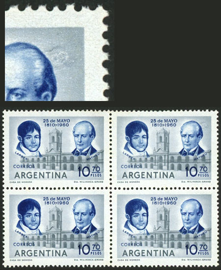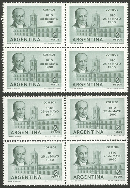 10.70P. May Revolution 150 years, block of 4, one with variety: Large retouch on Matheu´s head, unused, VF quality (Image)