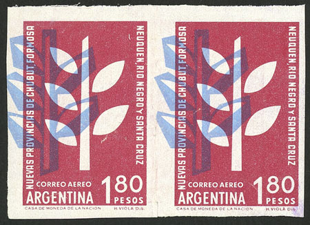 GJ.1182P, airmail, 1.80P. New Provinces, with variety: Light blue color shifted, imperforate pair with minor defects, very fine apperance, rare!