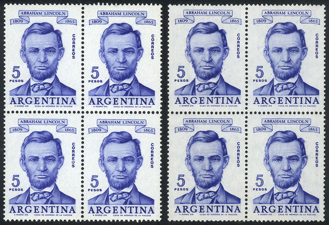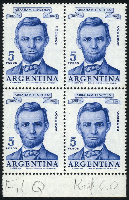 Lincoln, block of 4 printed on GLAZED paper. (Image)