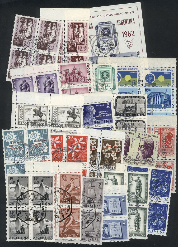 other values, commemorative stamps issued in 1961 (without GJ.1204/5), including GJ.HB 19, in blocks of 4 with first day postmark (Image)