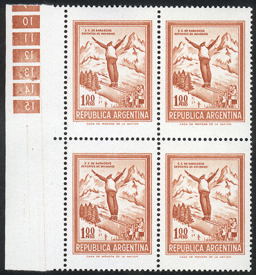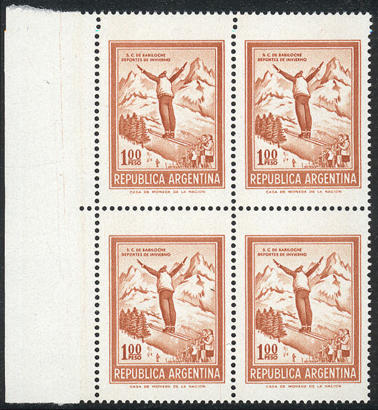 $1 Bariloche, light chestnut, marginal block of 4, VF quality! (Image)