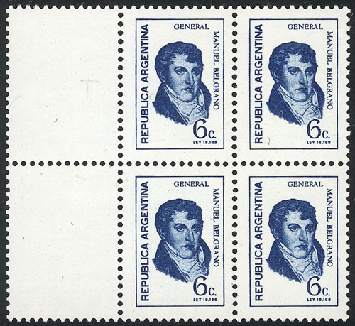 GJ.1524CZ, 6c. Belgrano, block of 4 with 2 labels at left, VF quality (Image)