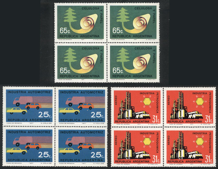 GJ.1570/2, National Industries, cmpl. set of 3 values in blocks of 4, VF quality (Image)