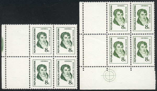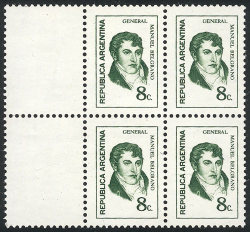 GJ.1525ACZ, 8c. Belgrano, phosphorescent, block of 4 with 2 labels at left, VF quality (Image)