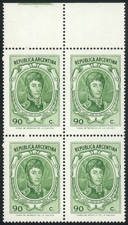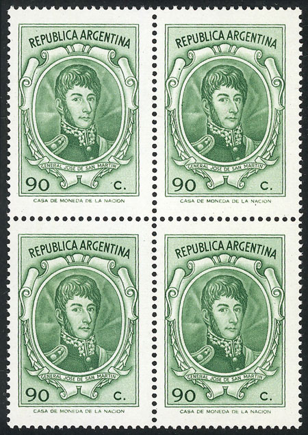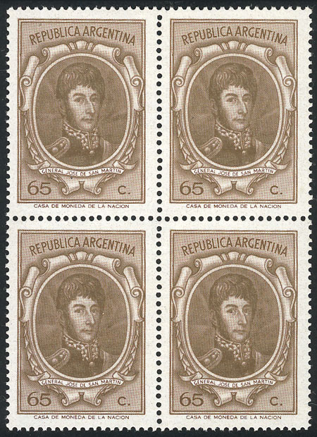 65c. San Martín, with Casa de Moneda wmk, block of 4, VF quality (Image)