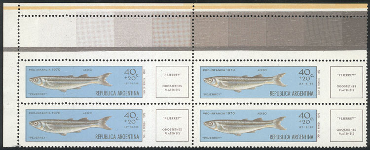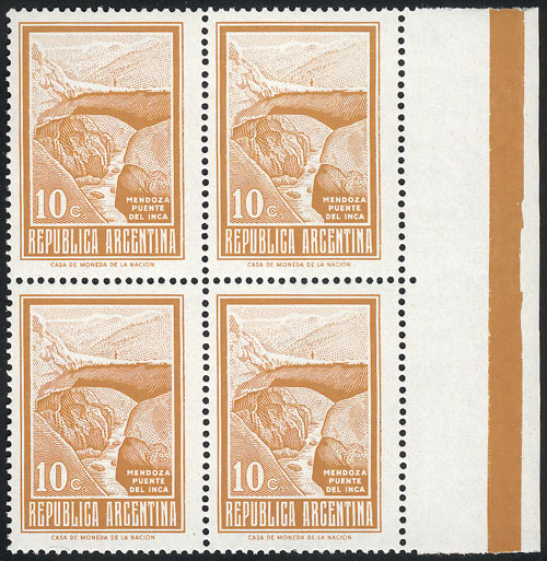 10c. Incan bridge, CHALKY PAPER with Casa de Moneda wmk parallel to the short side, marginal block of 4, VF! (Image)
