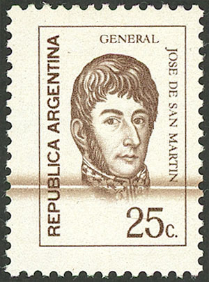 25c. San Martín, variety: Brown line across the stamp, VF (Image)