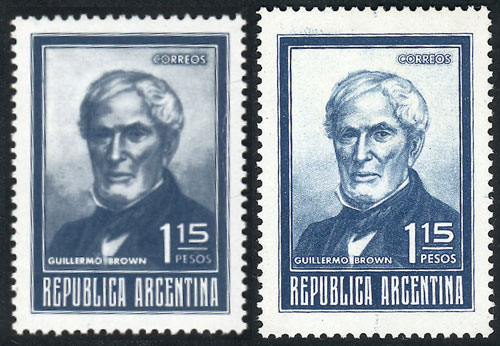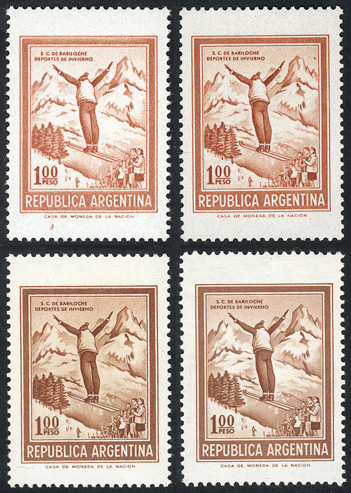 1535A + 1543, 1P. Bariloche, light chestnut on FF and FN papers, dark chestnut and Casa de Moneda wmk, VF quality (Image)