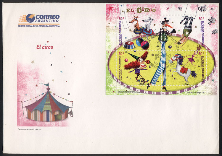 Circus, s.sheet on a FDC cover, VF quality (Image)