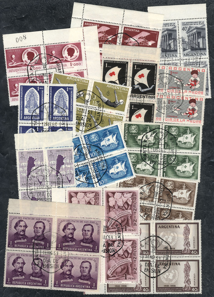 1063   imageLot of 50 blocks of 4 issued in 1950s and 1960s, with first day postmarks, including some complete sets (Image) (Image-02) (Image-03) (All Images)