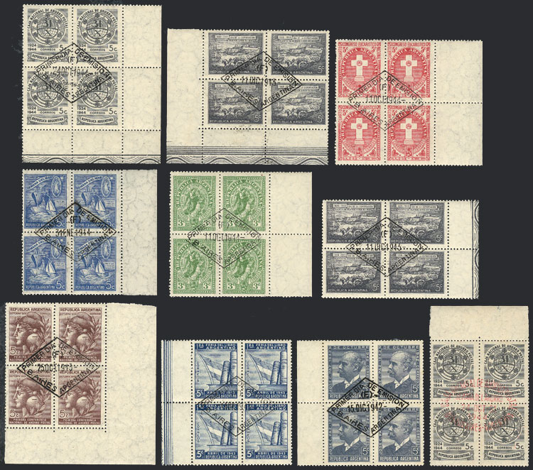 1061   imageLot of 10 blocks of 4 with first day postmarks, VF quality! (Image)