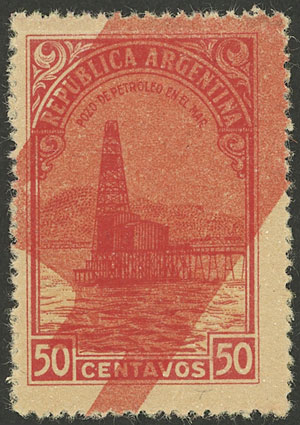 50c. Petroleum, proof in the issued color printed on special paper for specimens and PERFORATED (very rare!), excellent quality! (Image)
