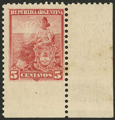 1896 ½c. Belgrano with COMPOUND PERFORATION: 11½ at top and 12 on the other sides, excellent quality, very rare! (Image)